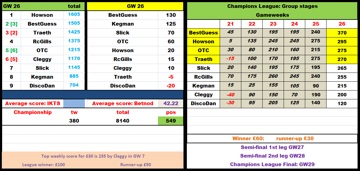 Looks like everybodys banker bonus in on tonights game and a correct score will be critical.