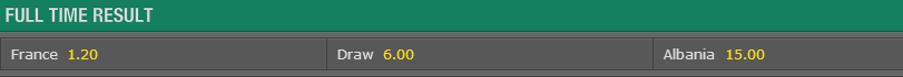 One bet of 1 pt for each game. maximum profit from each game 6pts (6/1)