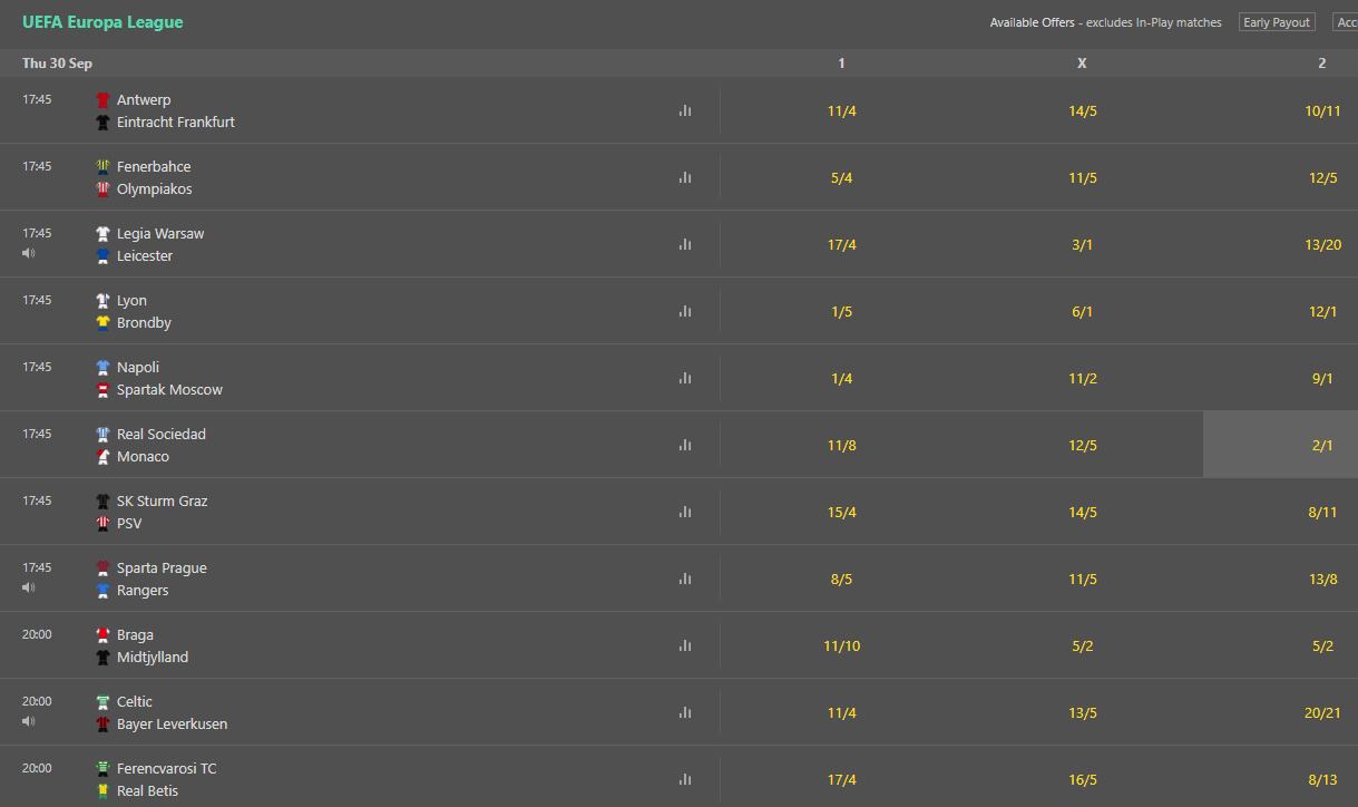 slick Administrator Joined Jul 26, 2011 Messages 15,839 Points 113 Sep 27, 2021 #1 18+ odds are correct at time of publishing (22:30 on 27/09/2021) and subject to change. Attachments 3.PNG 35.4 KB · Views: 633 4.PNG 15.2 KB · Views: 613 Last edited: Jul 2, 2024