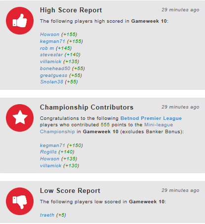 Thanks Reg,Only just seen this Newman. I think that High Score Report is not the highest scores of the week, it's telling you players who've got their highest score of the season. So for the players listed with 55pts, that was their highest score of the season to date, whereas although you scored 110pts, you've had other higher scoring weeks, so you don't appear on the list. That's how I understand it anyway.